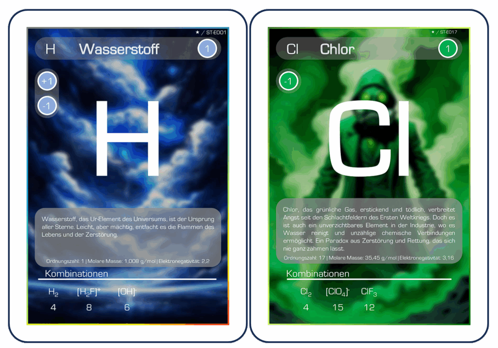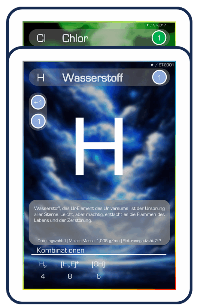 Hat ein Element mehrere Ladungen, muss sich zuerst für eine Ladung entschieden werden, diese gilt dann für alle Karten dieses Elements in dieser Verbindung.