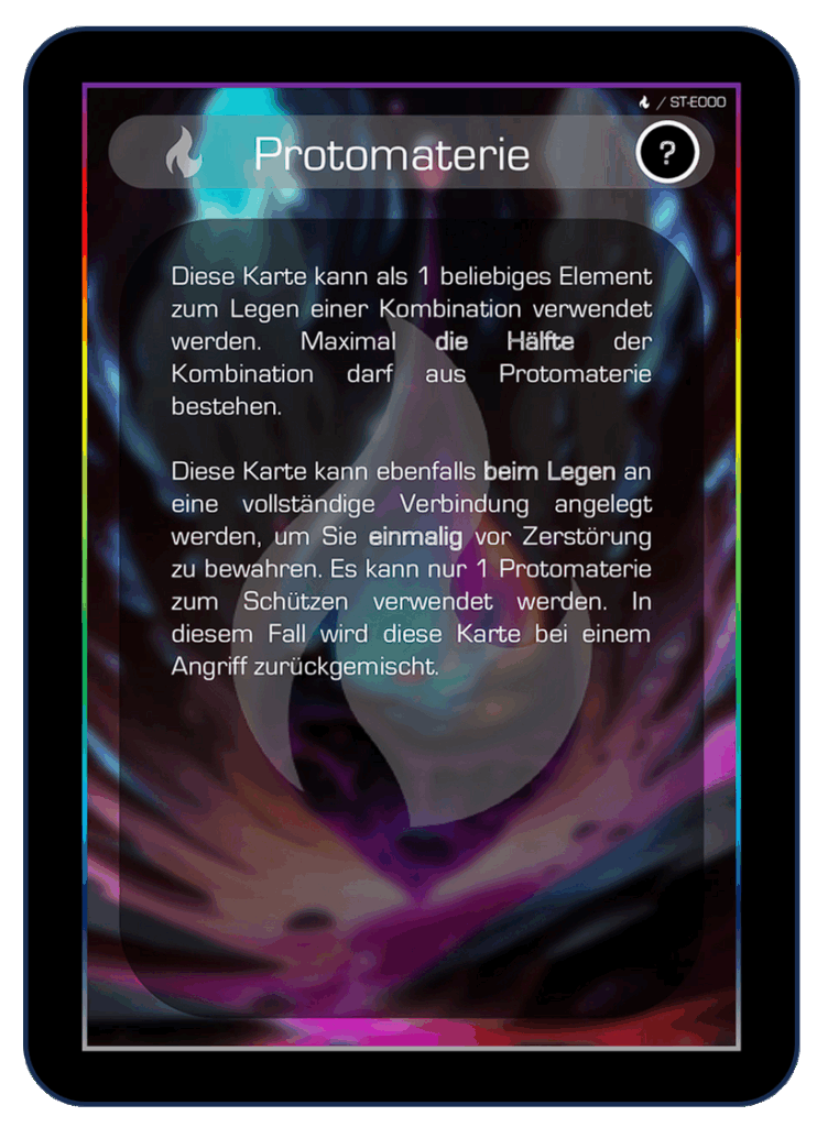 Hinweis: Eine Verbindung kann somit sowohl Protomaterie als Joker und zusätzlich eine schützende Protomaterie enthalten – aber nur die Schutz-Protomaterie blockt einen Angriff.